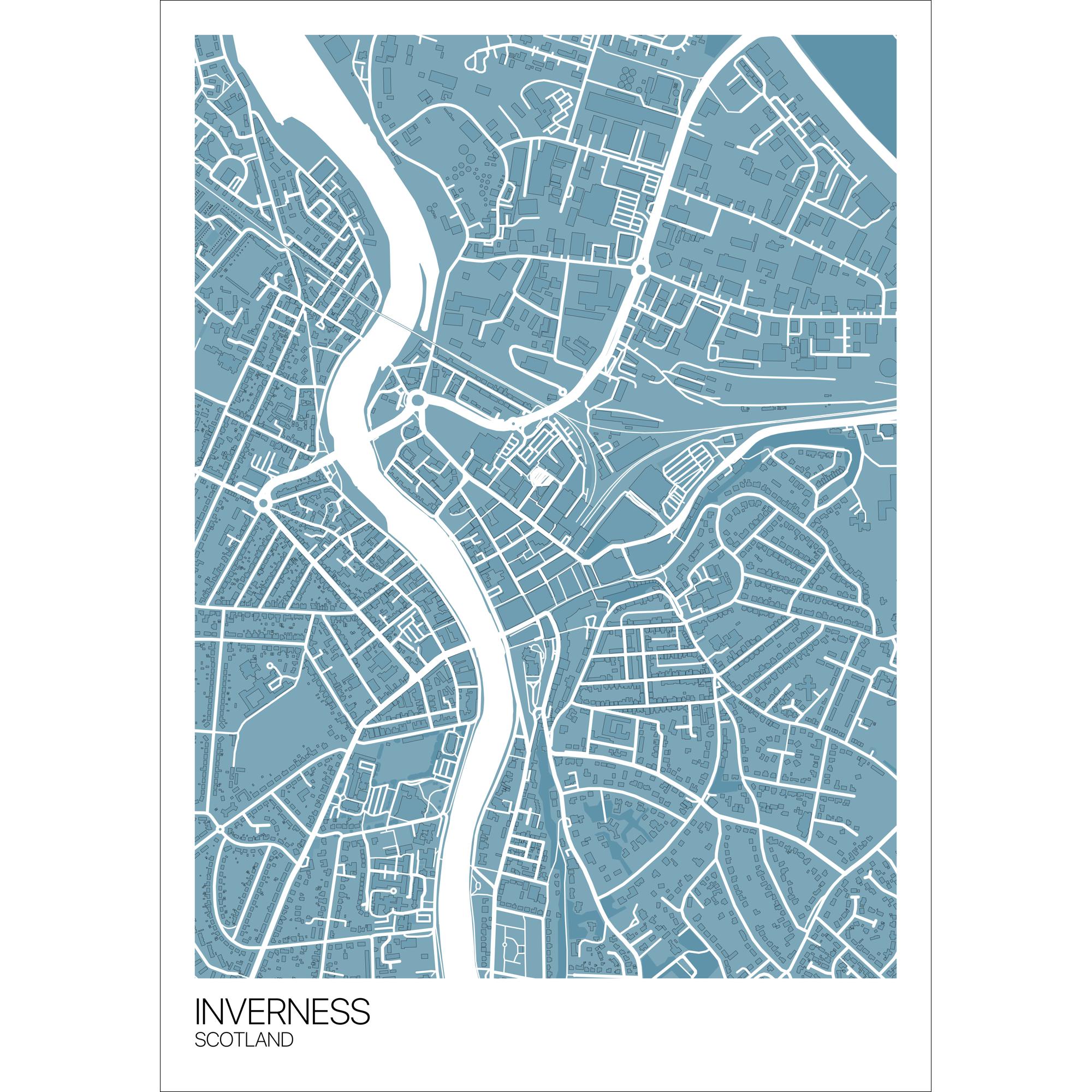 Inverness City Centre Map Art Print Free International Shipping